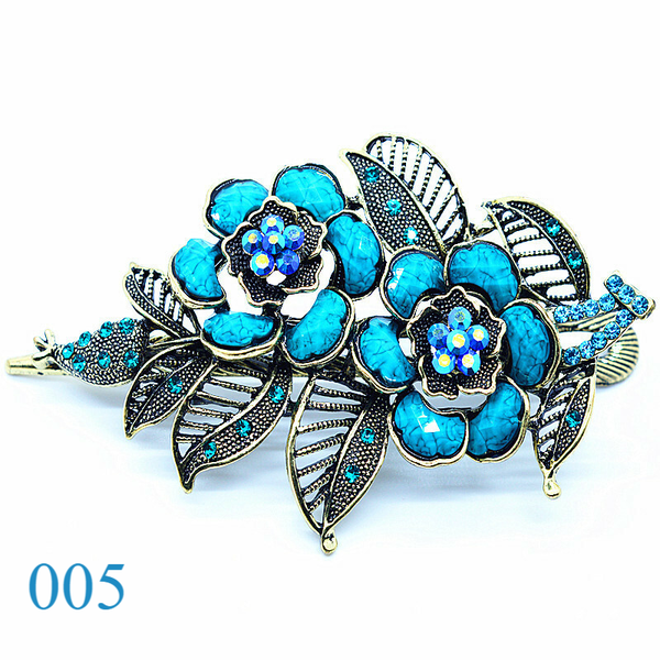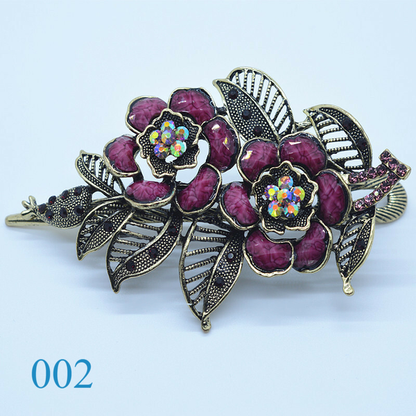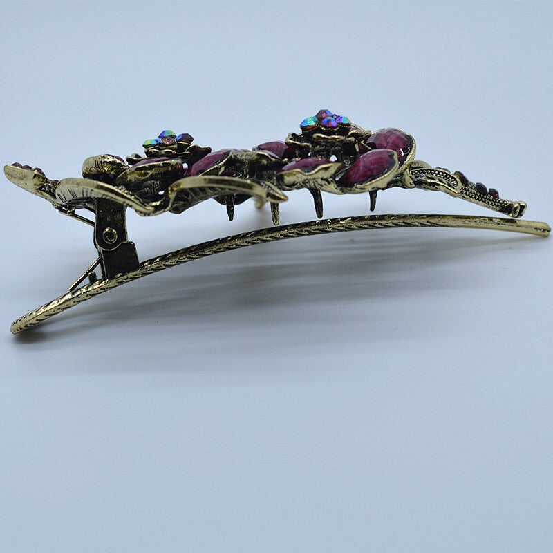 De haarklem bestaat uit zink metaal, bezet met bergkristallen steentjes.